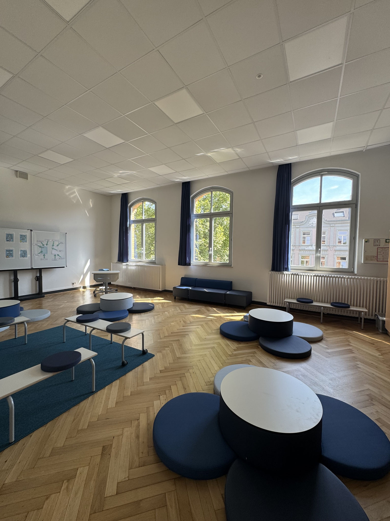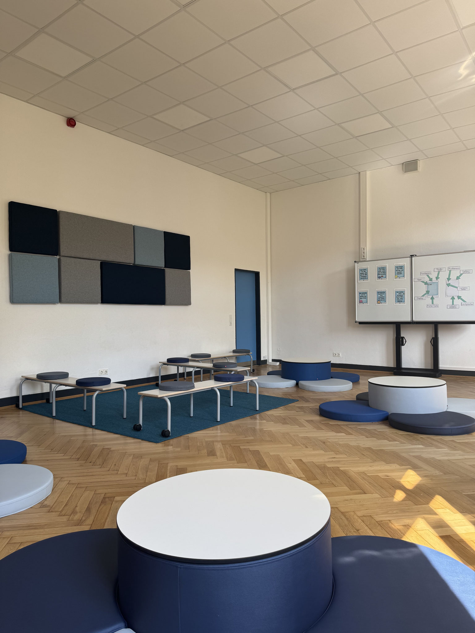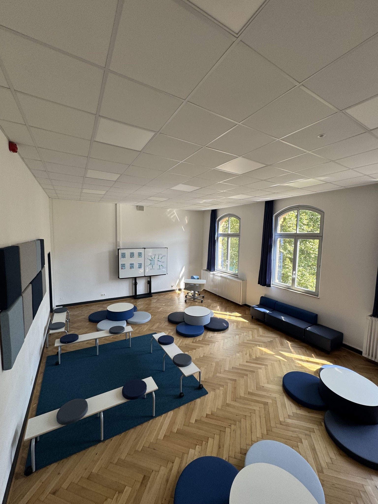 Zu Beginn des Schuljahres wurde unser Medienraum mit neuen Möbeln ausgestattet und erstrahlt nun in modernem Glanz. Die Auswahl der Möbel und Sitzmöglichkeiten wurde sorgfältig getroffen, um eine Umgebung zu schaffen, die vielfältige Lern- und Arbeitsmethoden unterstützt. So können die Medienkompetenz der Kinder in einer zeitgemäßen Lernumgebung gestärkt und gleichzeitig kreative Freiräume für den Unterricht in anderen Fächern geschaffen werden.