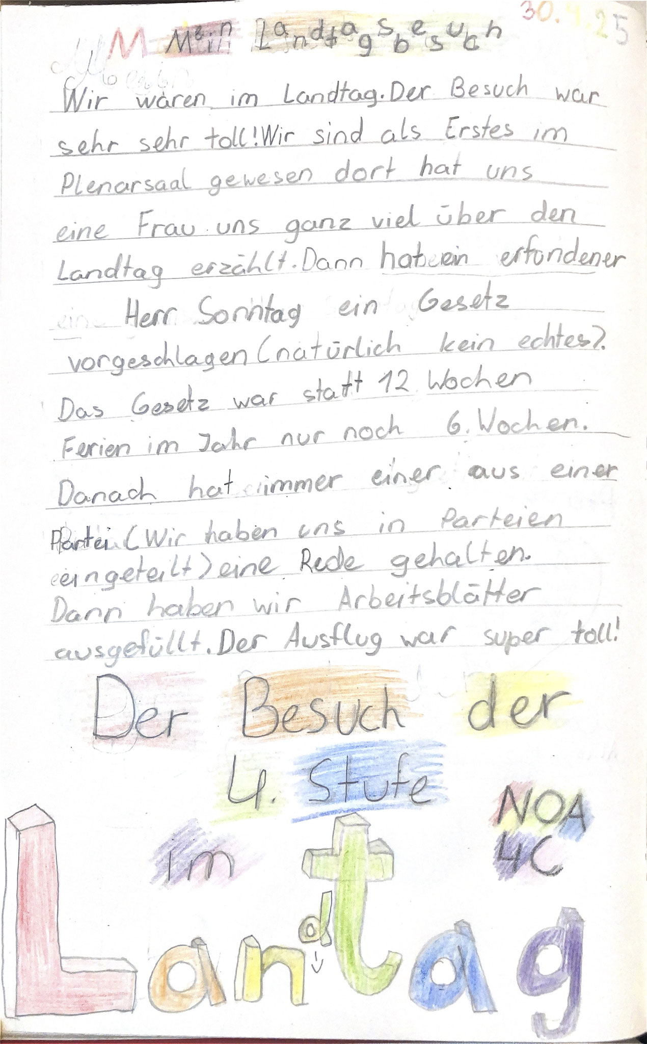 Im September haben die vierten Klassen den Landtag besucht. Die Kinder der Stufe 4 berichten: